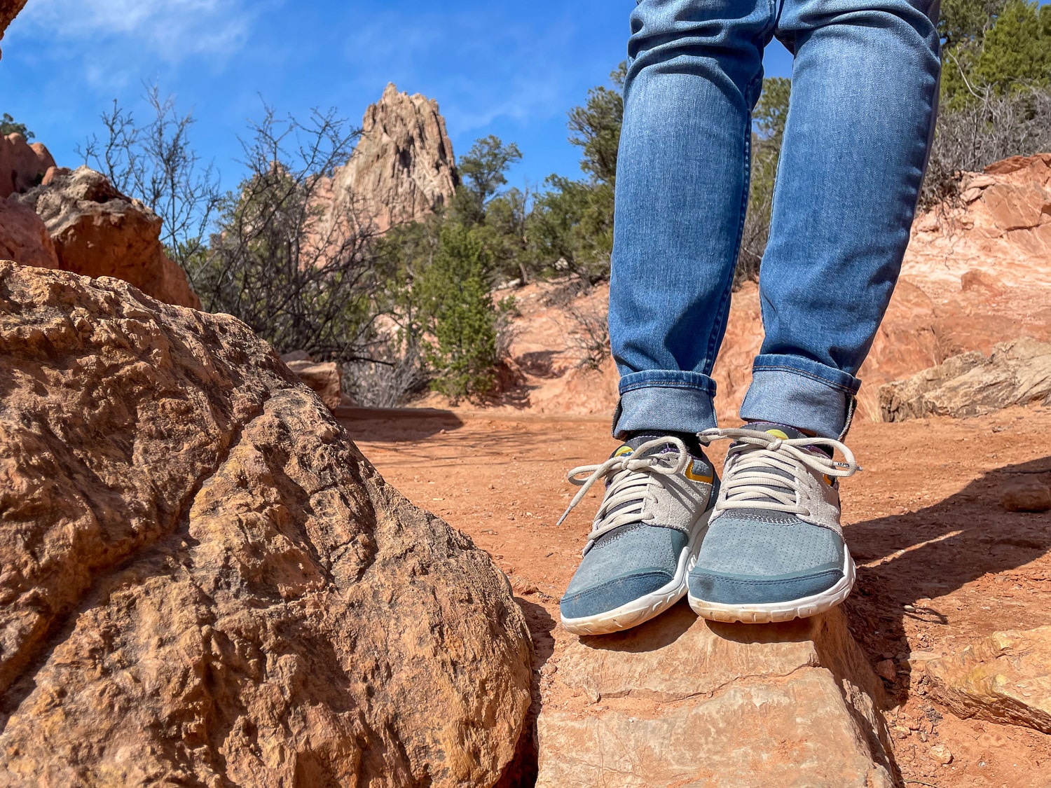 The Lems Trailhead (mens and womens) is a comfortable and versatile shoe that strikes a balance between stability, flexibility, and durability. It provides a wider fit than standard shoes but isn’t as wide as many barefoot options. The firm yet flexible sole gives it a rugged feel, and the breathable mesh upper enhances comfort. Traction is excellent on dry surfaces but may be less reliable on wet or icy terrain.